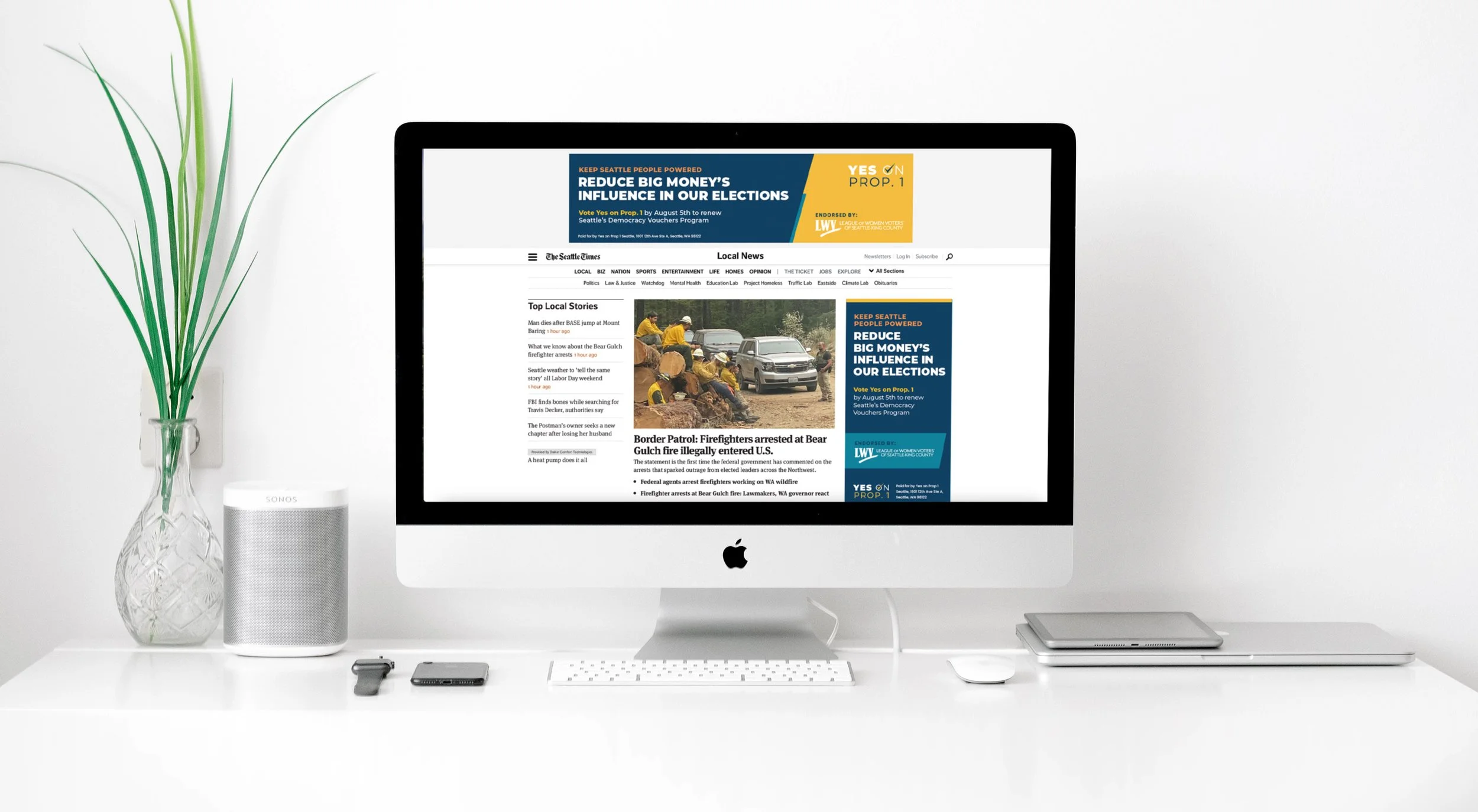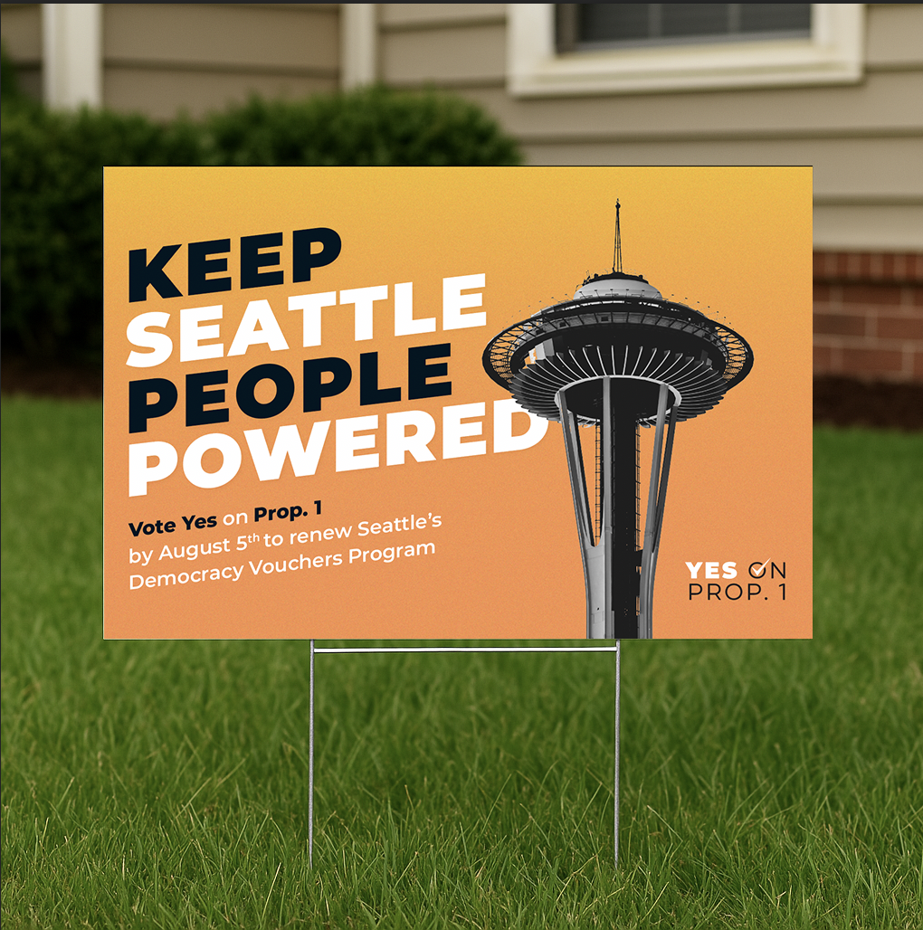 Seattle’s Democracy Vouchers Program is a first-in-the-nation program for public financing of local elections, empowering residents with vouchers to support candidates for local office. In 2025, the Yes on Prop 1 campaign led the effort to renew the program for another decade, bringing together a broad coalition of community leaders, democracy advocates, and grassroots organizers. As a freelance designer working with the campaign, I created a full suite of campaign materials designed to engage voters across multiple touchpoints, including print materials (mailers, door hangers, and literature for in-person canvassing), digital ads, stickers, and graphics for textbanking. The cohesive visual identity emphasized the campaign’s core message and ensured clear, accessible communication across channels, helping propel the campaign to a win on election day.